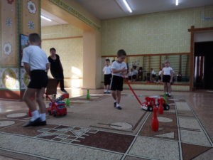 В рамках месячника ГО в нашем ДОУ прошел физкультурный досуг «Пожарные на учениях». Воспитанники старшей группы принимали участие в таких эстафетах «Кто быстрее сообщит о пожаре», «Пожарные едут на помощь», «Кто быстрее спасёт животных» и т.д. В игровой деятельности дети закрепляют знания о пожарной безопасности.