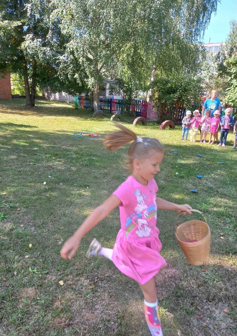 "Фея Лета", загадывала загадки, поиграла в интересные игры, младшая группа на полянке, собирали грибы и ягоды, а ребята старшей и средней группы приняли участие в эстафетах, соревновались как настоящие спортсмены. Фея взмахнула волшебной палочкой и на празднике, царило радость и счастье детей.