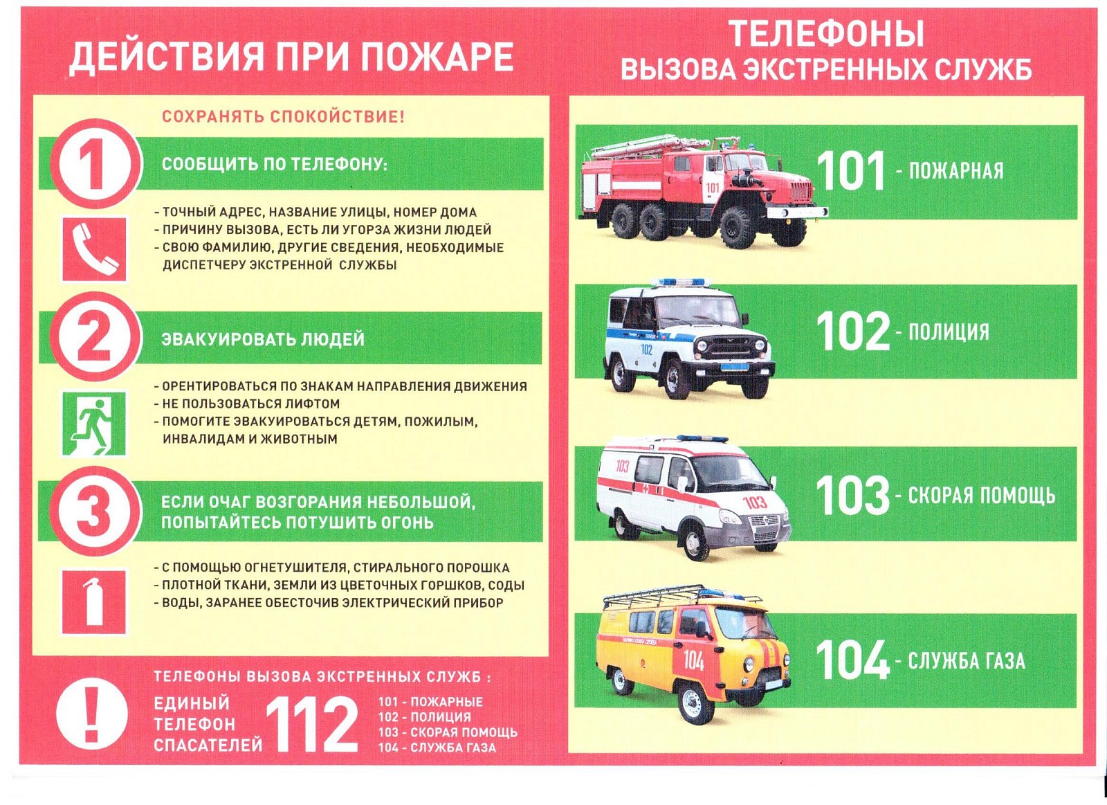 Назови номер пожарной службы? (01 или с сотового телефона 010, 112)