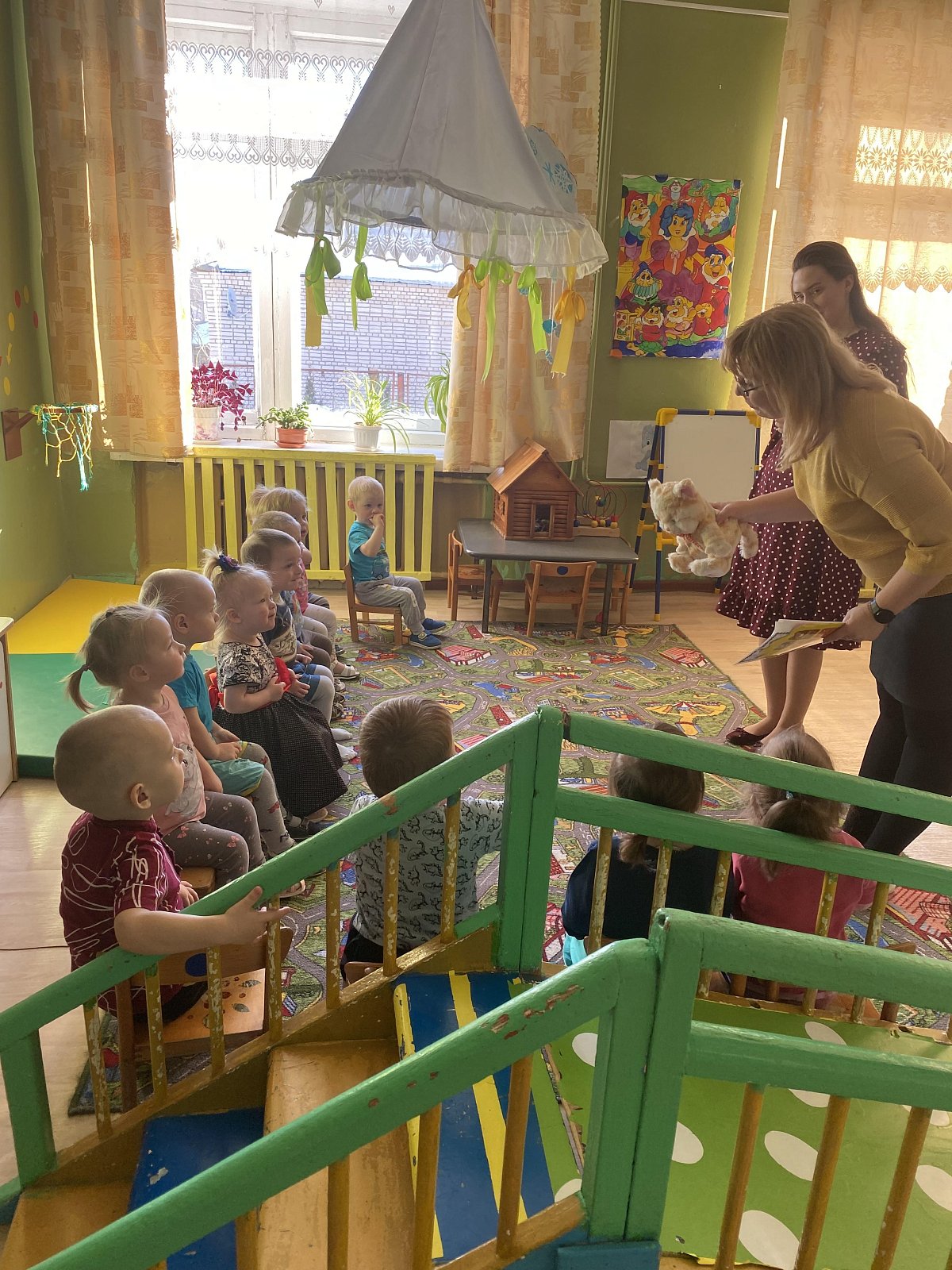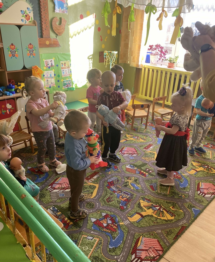 В группе раннего возраста дети с удовольствием играли с Кошкой-Машей, танцевали, с интересом собирали цветы в корзинки.