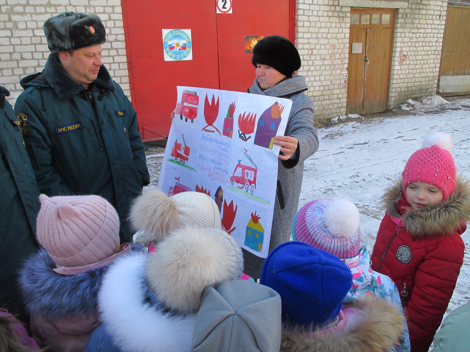 В знак благодарности и уважения за труд пожарных воспитанники подарили гостеприимным хозяевам свои работы. Посещение пожарной части надолго останется в памяти детей!