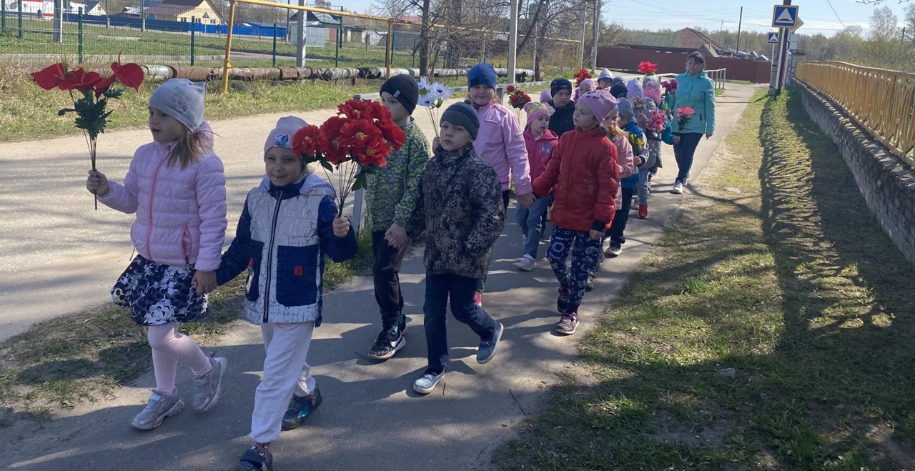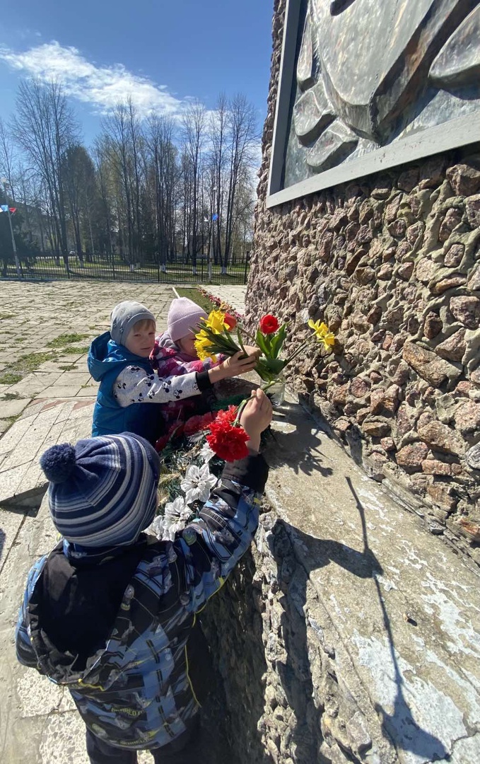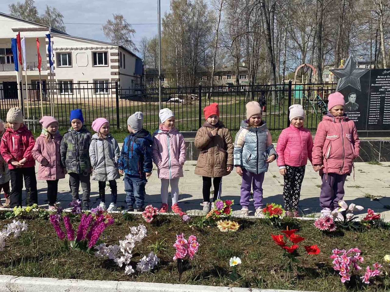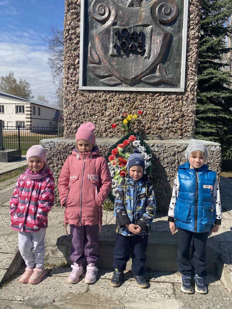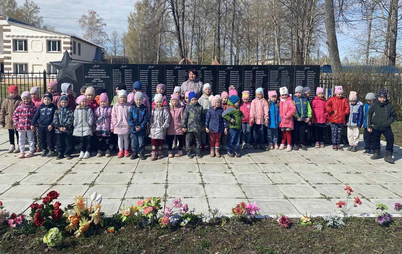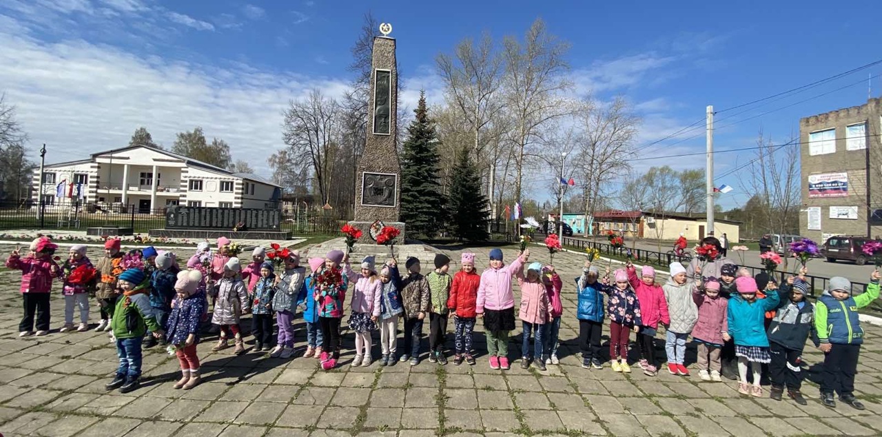 Сегодня воспитанники и педагоги нашего детского сада возложили цветы к памятнику павшим на площади Победы в поселке.