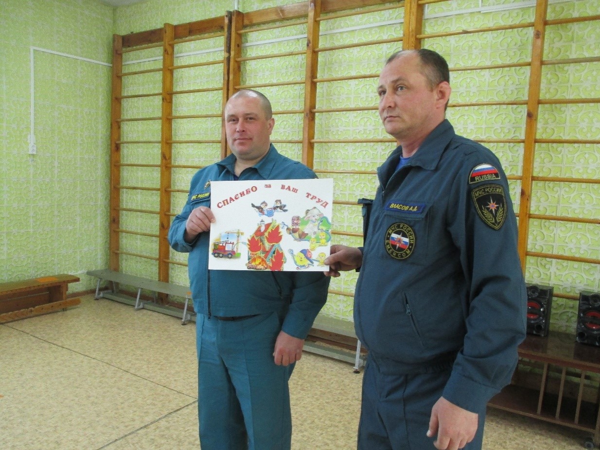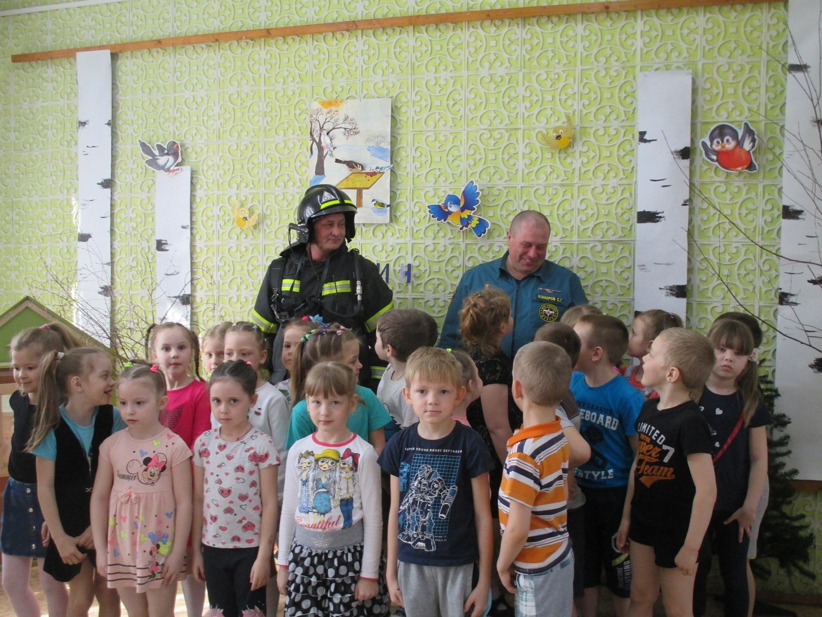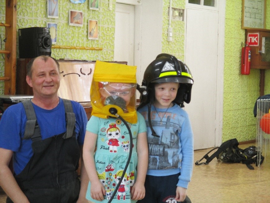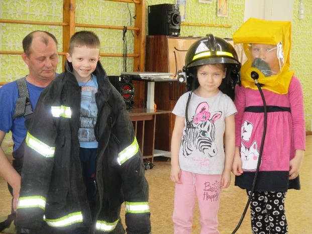 Алексей Дмитриевич Власов рассказал ребятам о ежедневной работе пожарных, продемонстрировал пожарно-техническое снаряжения. Когда было предложено детям примерить пожарную каску, куртку, желающих оказалось много. Сергей Геннадьевич Комаров побеседовал с детьми о правилах пожарной безопасности, о вреде поджога травы.
