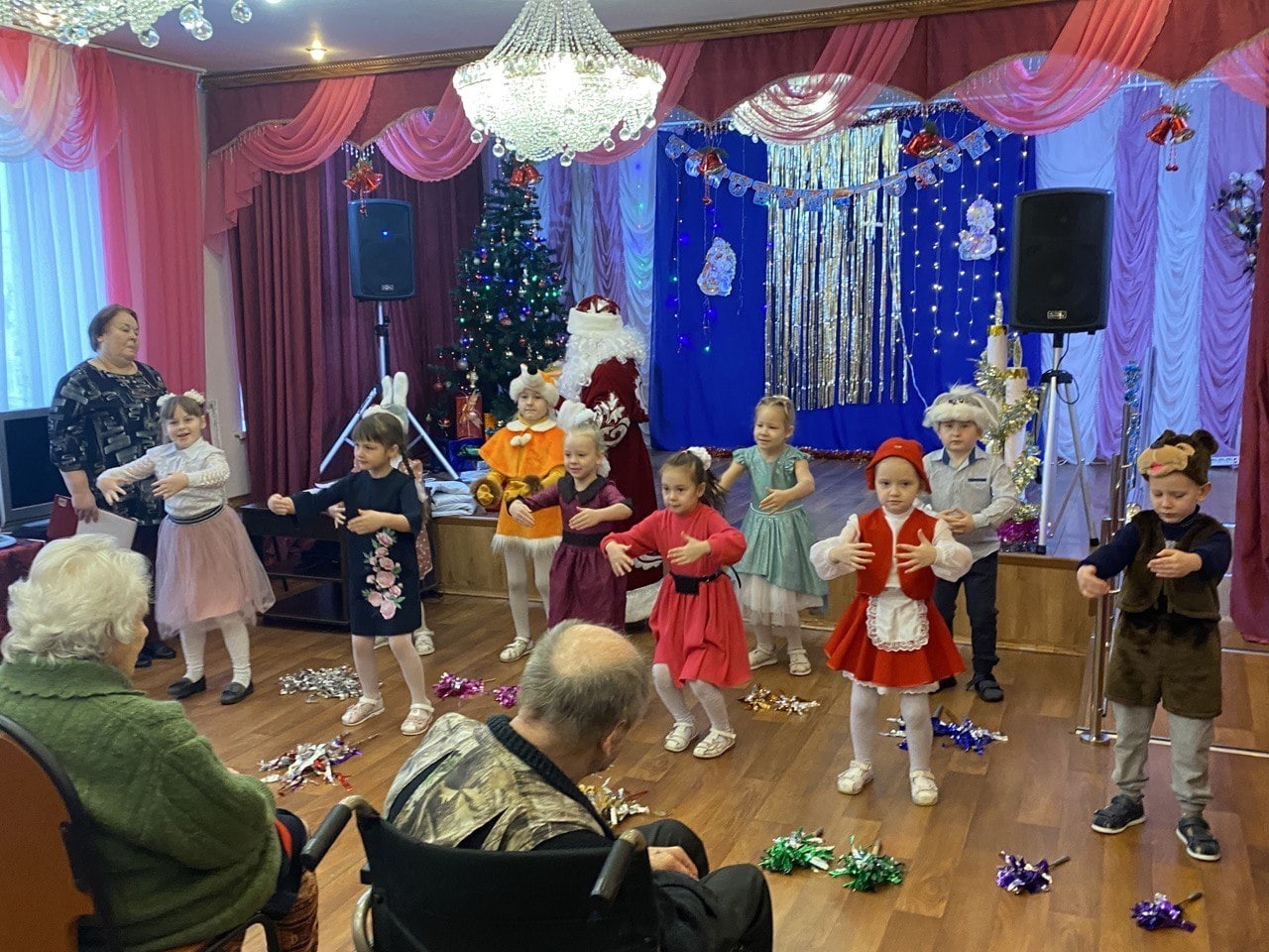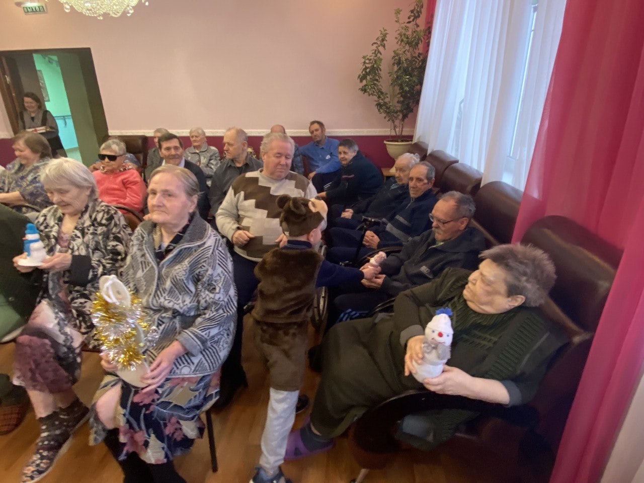 13 января ребята подготовительной к школе группы, вместе с педагогами детского сада, в очередной раз, побывали в гостях в Отделении милосердия для граждан пожилого возраста п. М. Горького. Дед Мороз, Серый Волк, Лисичка-сестричка и Мишка косолапый показали новогоднюю сказку. Дети пели танцевали, играли на музыкальных инструментах. А на прощание подарили хозяевам Снеговичков, сделанных руками воспитанников и родителей.
