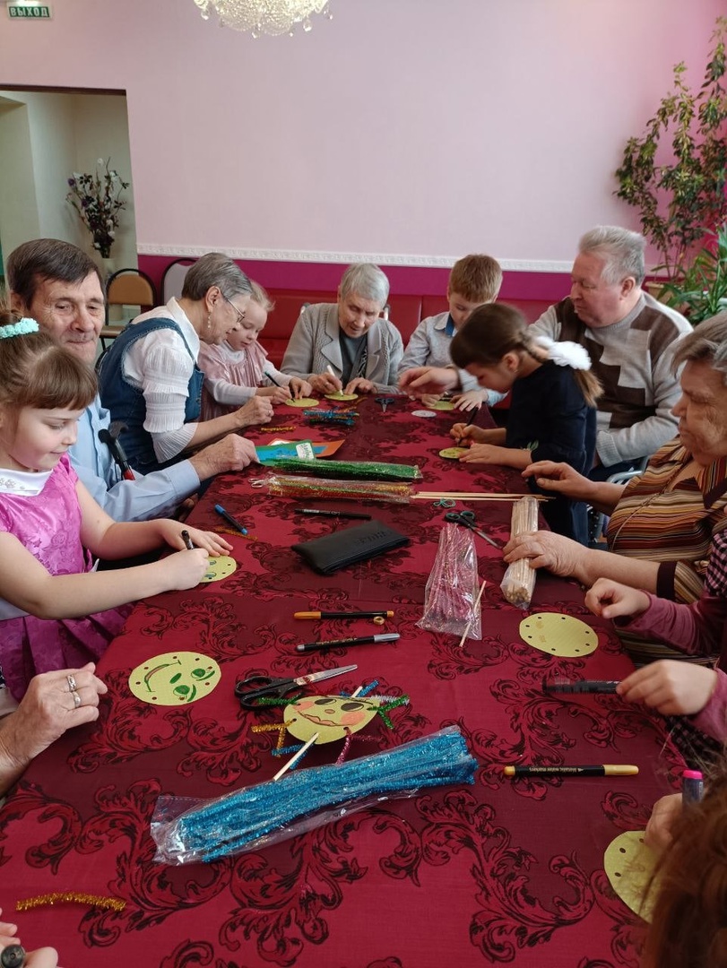 Нас пригласили в гости на мастер- класс по изготовлению Масленицы в Отделение милосердия для граждан пожилого возраста. Провела его Зеленовская Ю. Ю. Дети вместе с бабушками и дедушками изготавливали символ праздника. Как же это было здорово!