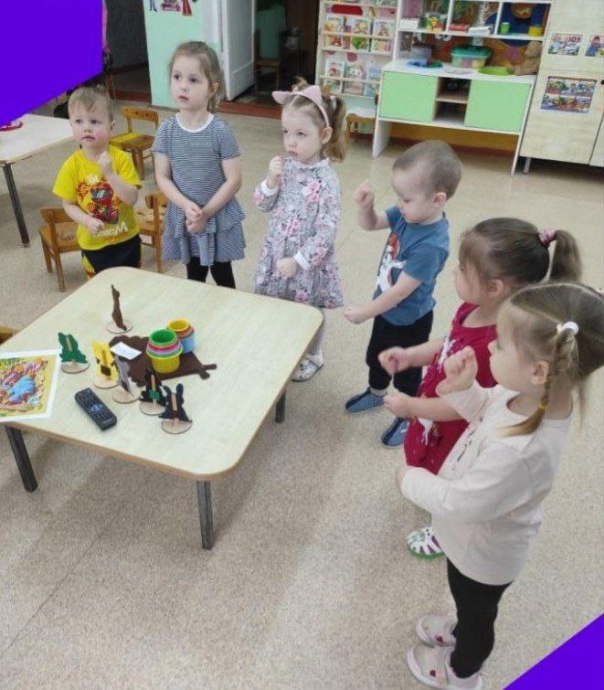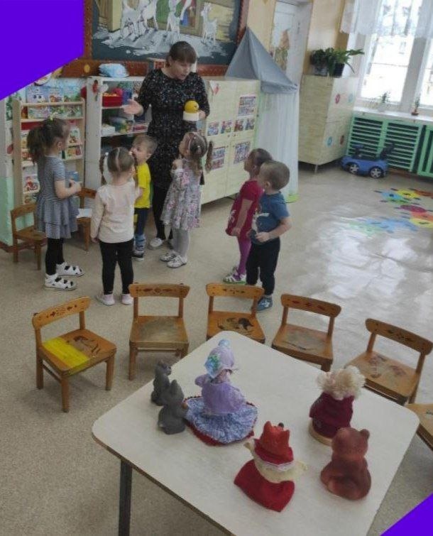 " Киска, киска брысь", " Петушок, петушок золотой гребешок ", " Ты собачка не лай". Малыши с педагогом, Домниковой Лией Владимировной , "Путешествовали по сказкам".Дети помогли Колобку вернуться в свою сказку. Они "побывали" в русских народных сказках: "Курочка -Ряба", "Репка", "Теремок" и "Колобок".