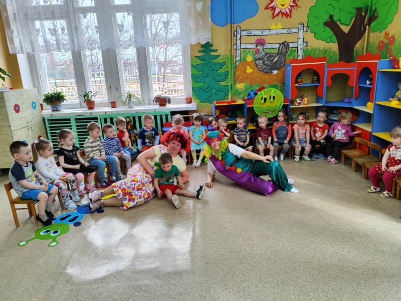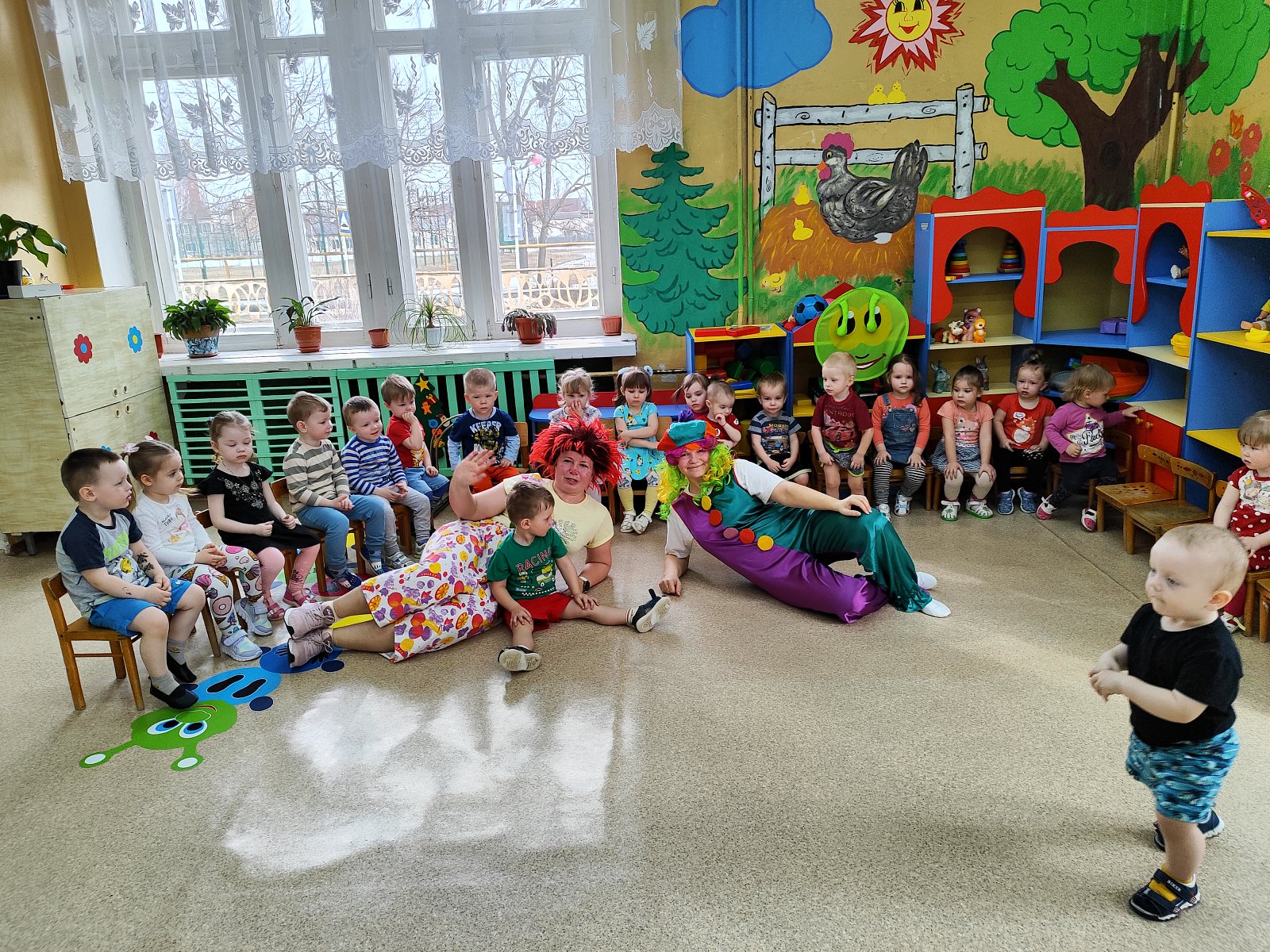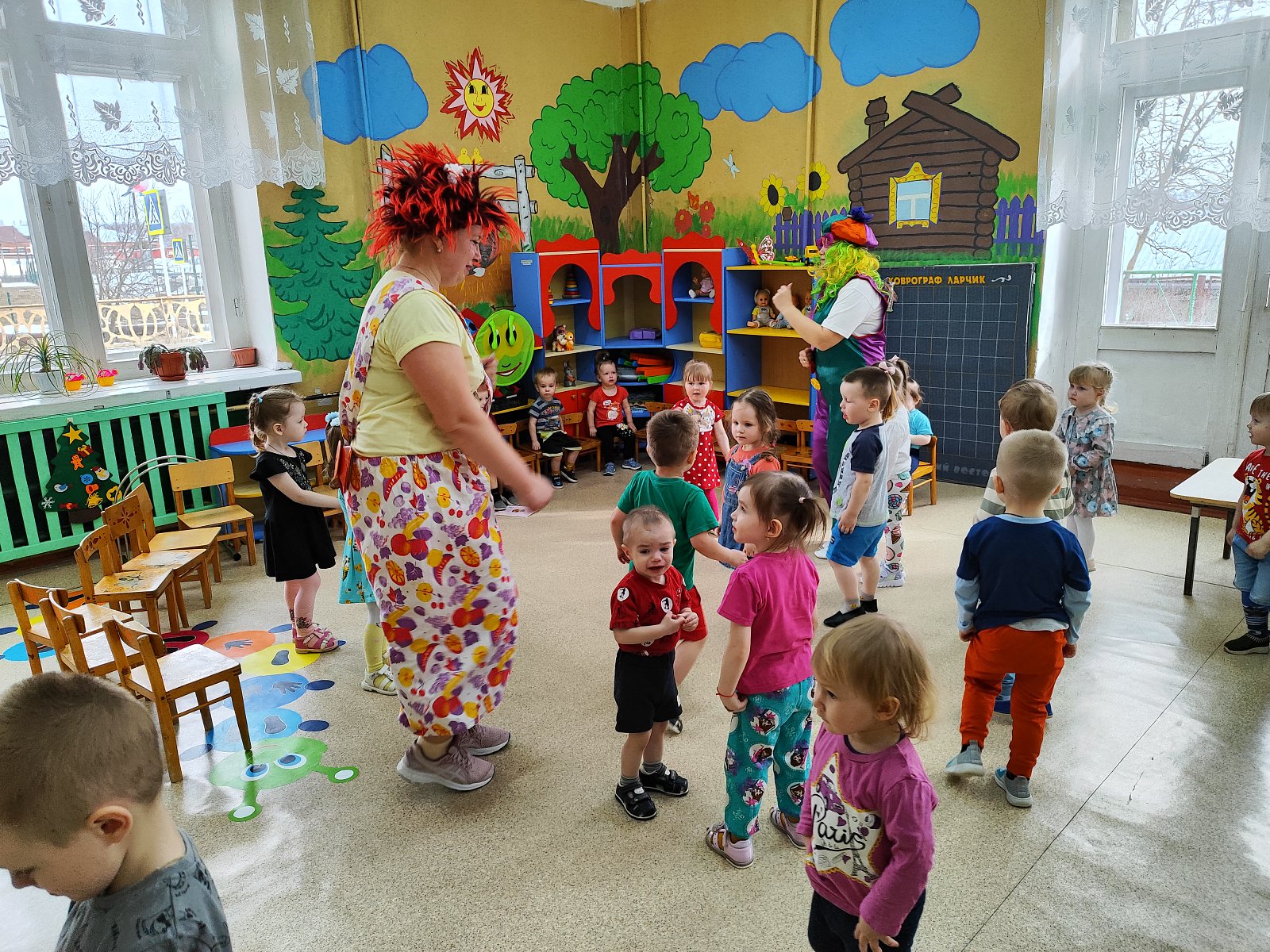 1 апреля к детям раннего возраста пришли в гости клоуны Тимошка и Антошка. Они провели развлекательное мероприятие с играми, шутками,весёлыми песнями и танцами! На сказочном паровозике малыши отправились в весёлое путешествие в страну Смеха.