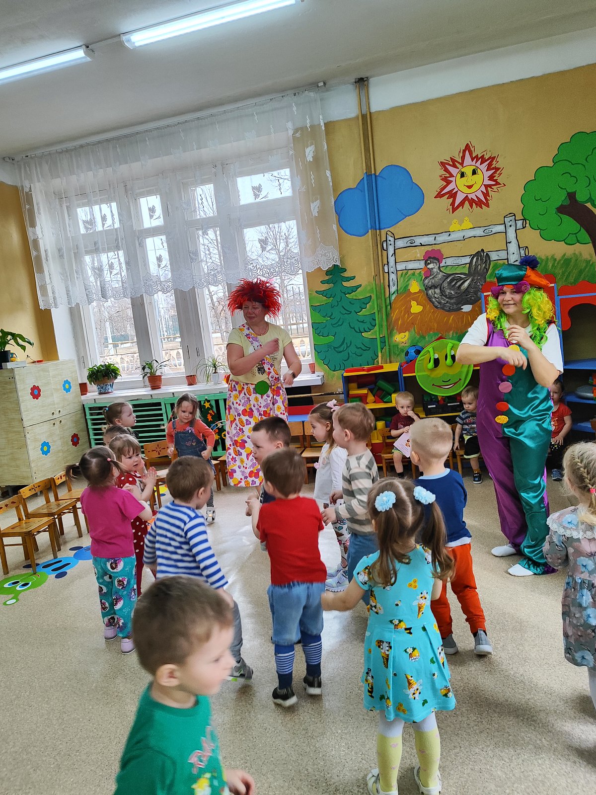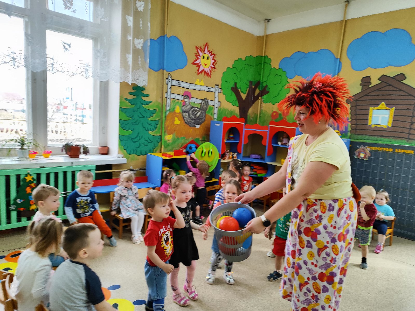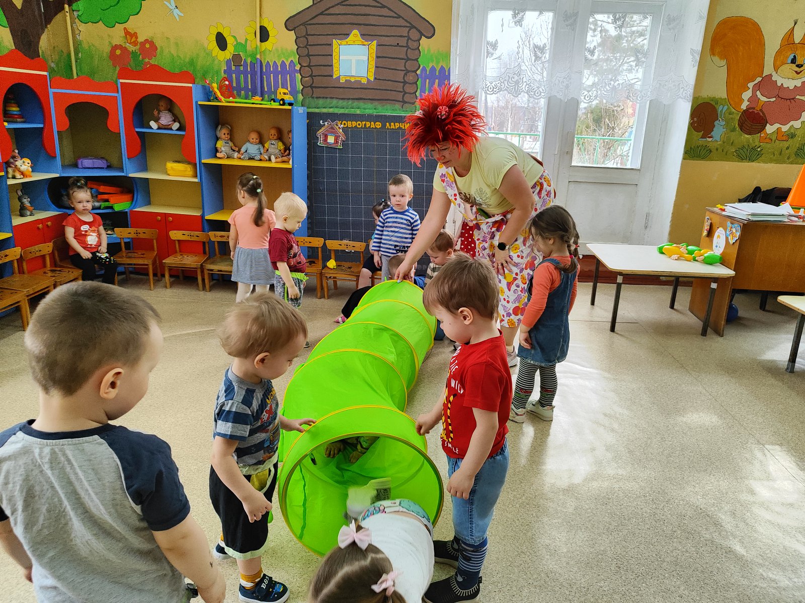 1 апреля к детям раннего возраста пришли в гости клоуны Тимошка и Антошка. Они провели развлекательное мероприятие с играми, шутками,весёлыми песнями и танцами! На сказочном паровозике малыши отправились в весёлое путешествие в страну Смеха.
