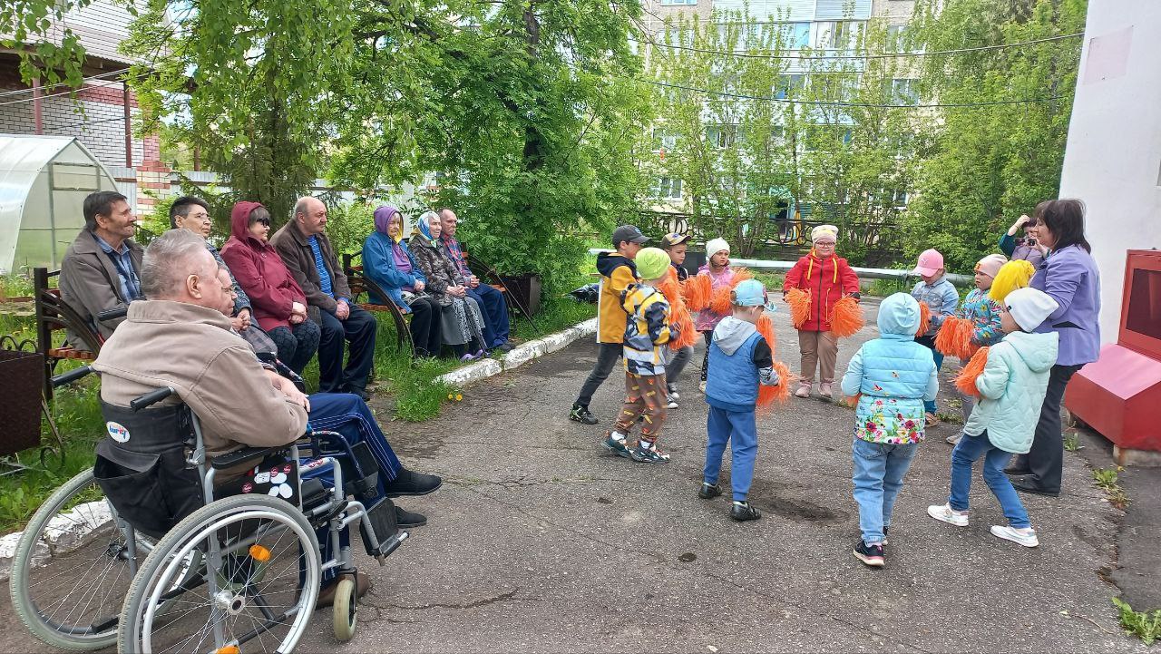 Сегодня дети подготовительной к школе группы посетили Отделение милосердия для граждан пожилого возраста п. М. Горького. Мероприятие посвящено 79-летию Победы. Ребята исполняли песни : "Чтить века Победу будем"," Российский флаг",прочитали стихи "Неизвестный солдат"," Мир и дружба". Дети и взрослые почтили память павших героев минутой молчания.