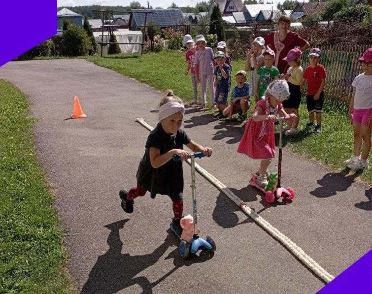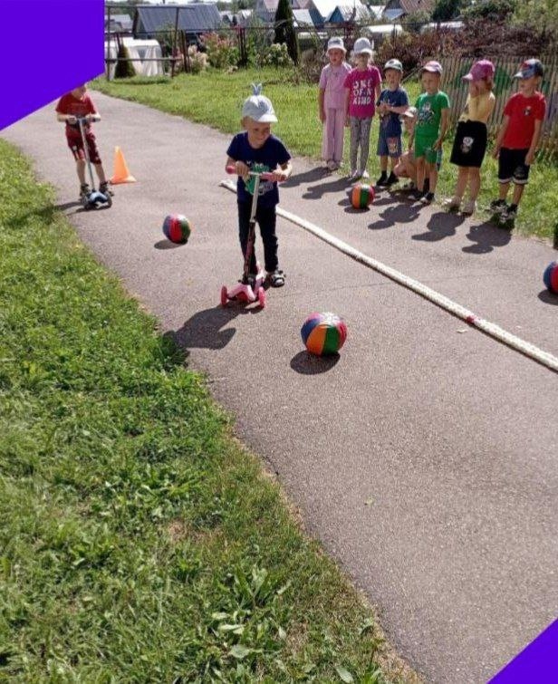 Поучаствовали в эстафетах на самокатах, "Змейка", "Таксисты".