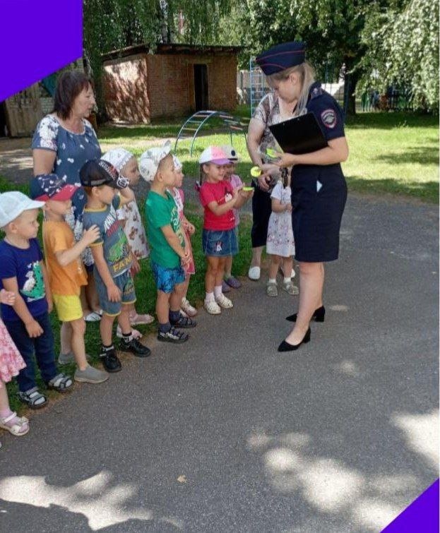 В гости к детям пришла инспектор безопасности дорожного движенияпамя Макарова Светлана Алексеевна. Она провела беседу о соблюдении правил дорожного движения на дороге и о работе светофора. На память вручила детям светоотражающие наклейки.
