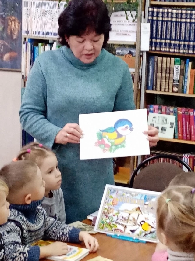 В нашем детском саду стало традицией отмечать российский экологический праздник Синичкин день. ????Сегодня дети старшей группы вместе с воспитателем О. А. Гузовой посетили библиотеку посёлка.???? Библиотекарь,Татьяна Анатольевна Морозова, познакомила детей с историей праздника, прочитала сказку Екатерины Морозовой "Про синичку", уточнила, чем можно и нельзя подкармливать птиц зимой.???? Маленькая птичка с ярким оперением не оставила равнодушным ни взрослых, ни детей.Ребята получили в подарок картинку Синички для раскрашивания.