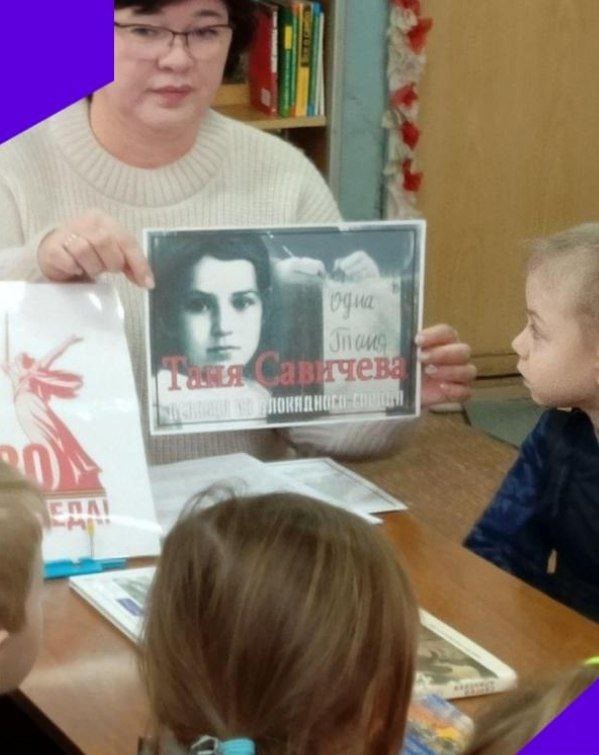 В рамках реализации плана работы с социальными партнёрами, дети старшей группы, с воспитателем О. А. Гузовой, посетили библиотеку нашего посёлка. В истории нашей страны есть трагические события, которые коснулись почти каждую семью. Война ворвалась и в мирную жизнь ленинградцев. Почти 900 дней длилась блокада города.Библиотекарь Т.А. Морозова провела "Час истории"-"Имя Тани в наших сердцах". Дети познакомились с историей девочки, имя которой превратилось в один из символов всей Ленинградской блокады. Это Таня Савичева. Ребята с увлечением рассматривали иллюстрации в детских книгах о Великой Отечественной войне.????
