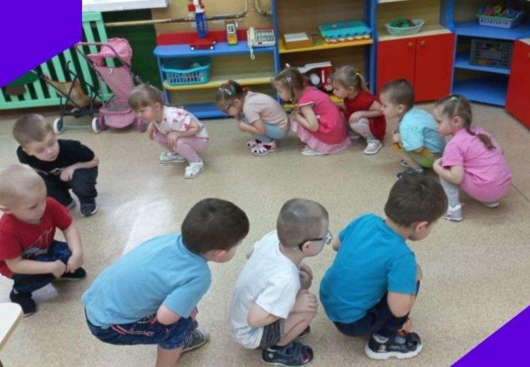Весёлая зарядка под музыку повышает не только настроение детей, но и развивает координацию движений, помогает заучивать стихотворные фразы, тренирует память. Дети младшей группы "Цыплята", в рамках тематической недели "Забота о здоровье" научились показывать длинный нос Буратино , толстый животик как у бегемота, большие уши, чебурашки, прыгать ,как лягушки, быть большими выше крыши.