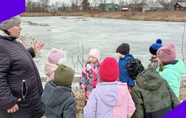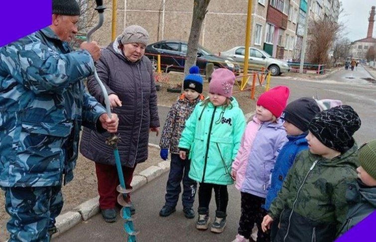 В нашем детском саду продолжается месячник "Безопасность на льду в весенний период". Дети старшей группой, с воспитателем Гузовой О. А., ходили на экскурсию к водоему нашего поселка. С детьми была проведена беседа "Осторожно тонкий лёд", дидактическая игра "Можно- нельзя". У детей сформировалось представление о правилах безопасного поведения у водоемах. Своими знаниями они поделились с местным любителем рыболовом, который показал им бур для бурения лунок, специальный ящик рыболова, дети высказали свои предположения, что в нем может находиться. Посоветовали ему - быть осторожным и внимательным, ведь весенний лед опасен для жизни. Помните, что весенний лед, капкан для вступившего на него!
