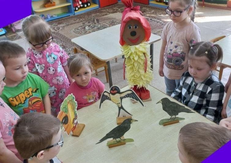 К детям младшей группы детского сада в гости пришла Умница с интересной историей. Дети с большим интересом слушали Умницу. Вместе поиграли: "Накорми ласточку и грача". Скворец спел детям свою красивую песенку, а дети построили для будущих птенцов домики- скворечники. Умница познакомила детей с правилами поведения в лесу. Вместе с детьми решили - будем беречь и охранять нашу планету.