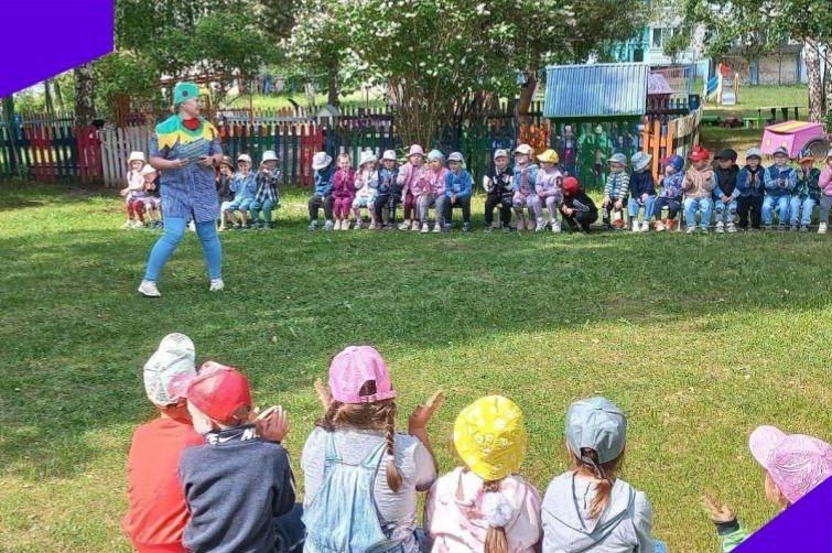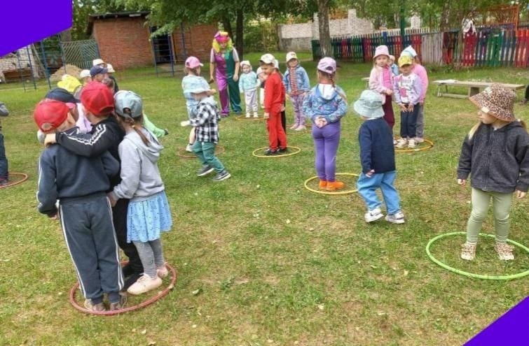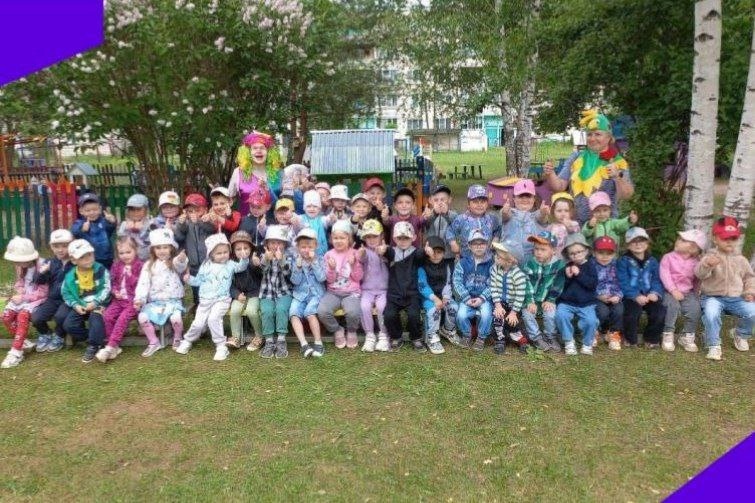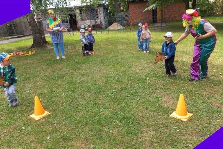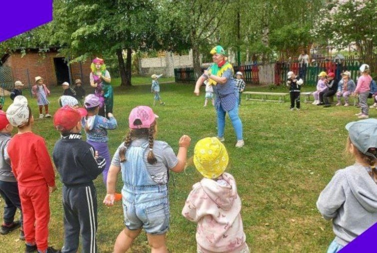 Сегодня в нашем детском саду прошла летняя игровая программа, приуроченная к этому замечательному празднику. Дети танцевали, соревновались и играли. Мероприятие провели Клоун Кексик ( воспитатель Домникова Л. В.) и Петушок ( Хахина С. Е) . По волшебству все оказались в цирке, где дети были жонглёрами, дрессировщиками, наездниками и мыльными пузырями. Танцевали весёлые танцы: " Солнышко лучистое", " Да- да, да сказала голова.. ", "Чуча- чача", " У жирафа, пятна, пятнышки везде", "Танец утят". У всех ребят было отличное настроение. В конце праздника клоун каждой группе подарил цветные мелки.