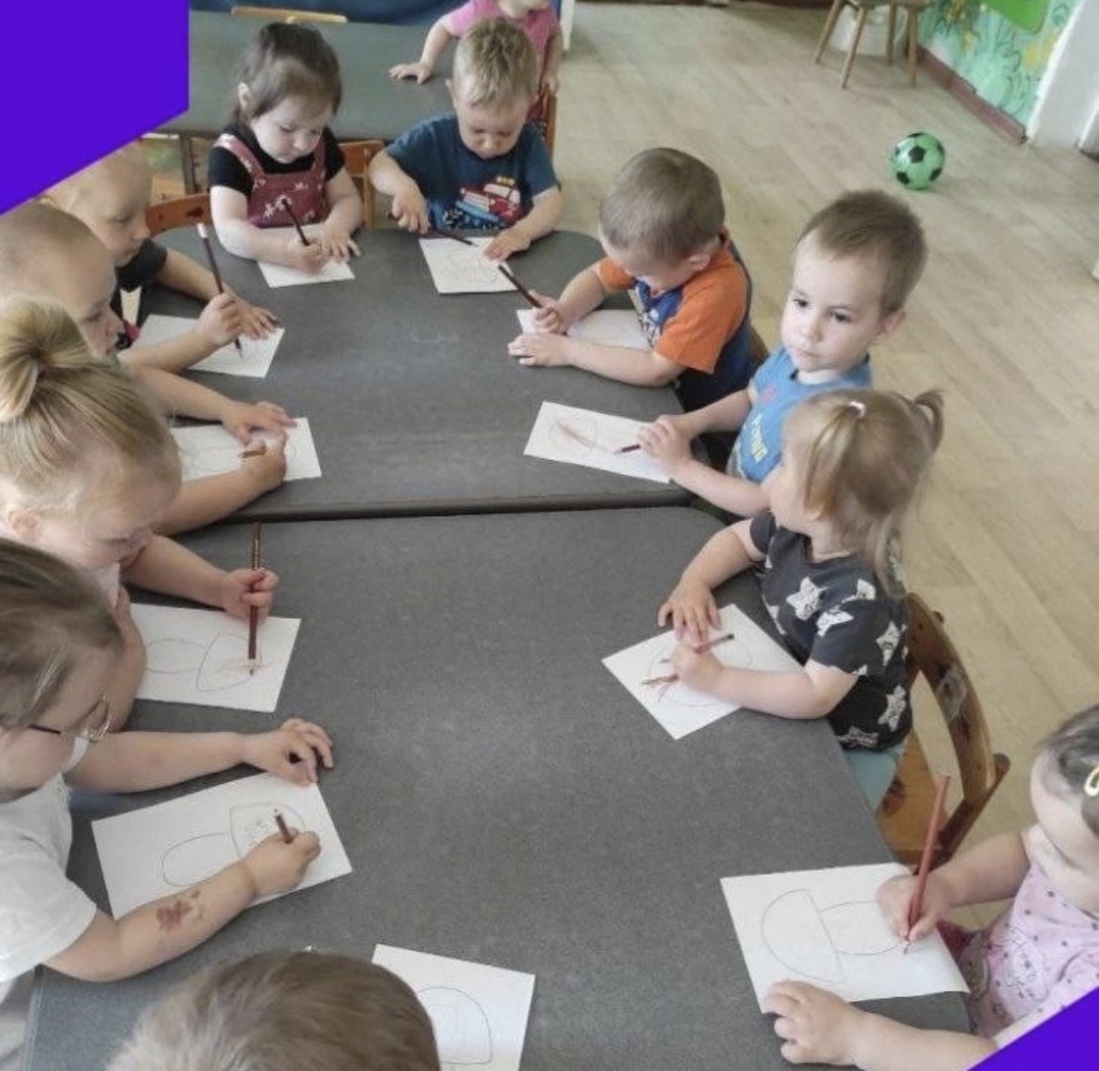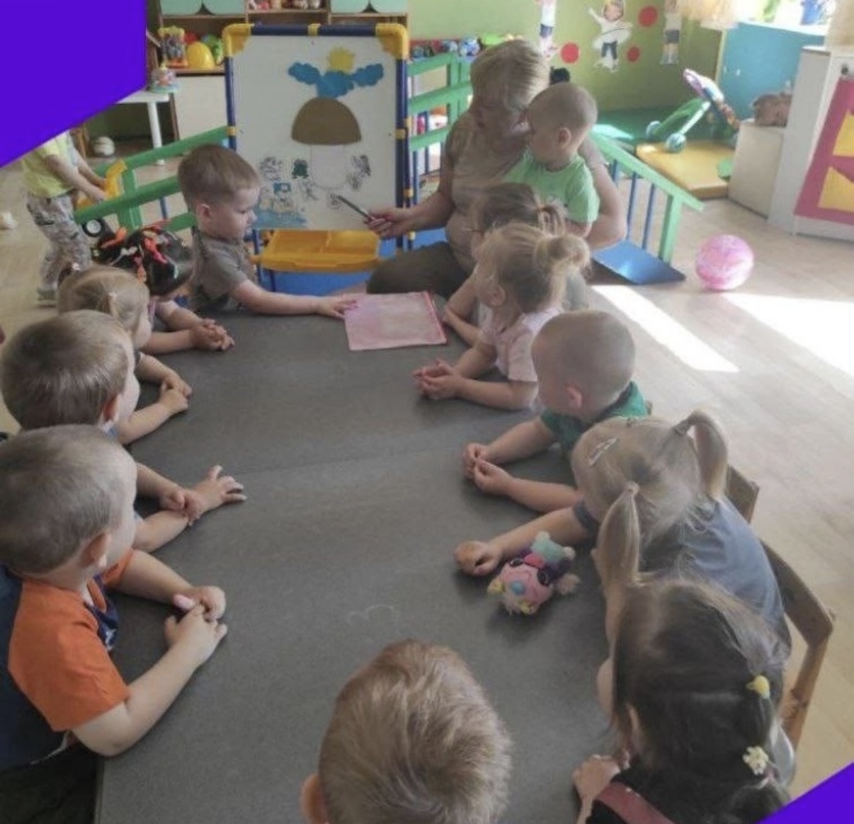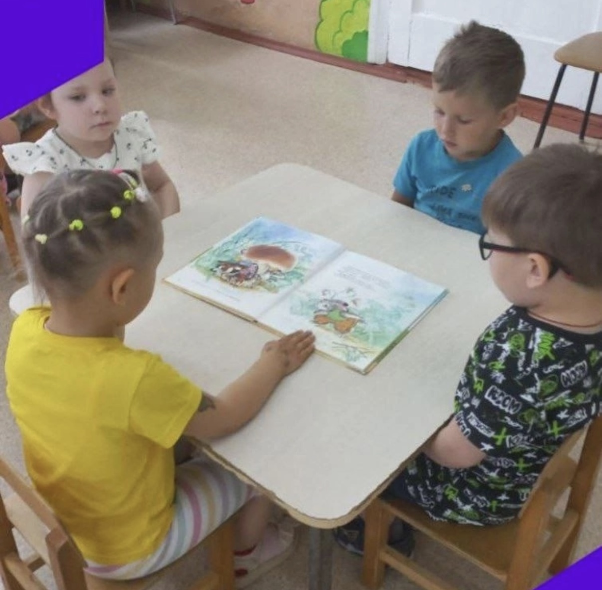Дети ясельной группы присоединились к чтению "Друзья под грибом" и раскрасили грибы.