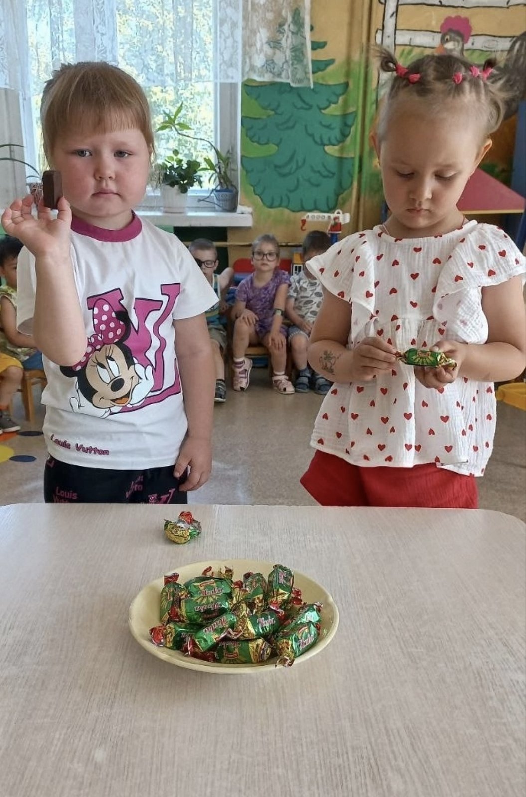 Дети младшей группы отметили этот шоколадный праздник. Ребятишки узнали, что существует дерево, на котором растут какао-бобы, из которых делают какао-порошок, варят всеми любимый и полезный напиток детей и взрослых - какао. На кондитерской фабрике делают из него шоколад и конфеты. Весело прошли вкусные игры: "Наложи быстро конфеты", "Кто быстрее развернет конфету". Шоколадный праздник подарил детям вкусные шоколадные конфеты, яркие эмоции и хорошее настроение.