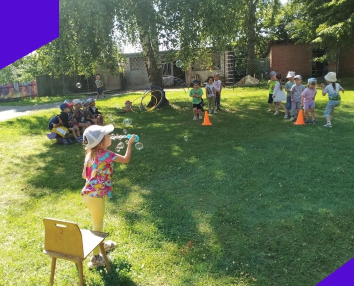 Ребятишки активно принимали участие в играх: "Озорные пузыри", "Кто поймает на ладошке", "Самый быстрый пузырь", "У кого больше пузырь". Охотно отвечали на вопрос - "На, что похожи мыльные пузыри?" Весело и дружно разгадывали загадки, танцевали. Дети с радостью запускали мыльные пузыри, потом продолжали веселье с мыльными пузырями на игровых площадках. Праздник получился веселый, забавный, энергичный и завершился праздничной дискотекой.