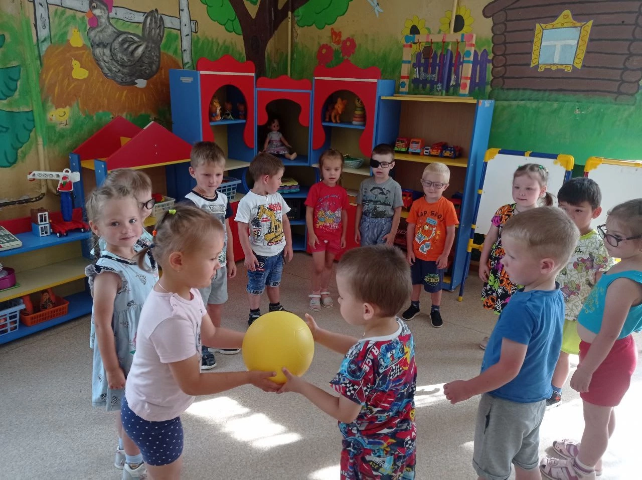 Мяч-одна из первых игрушек , с которой ребенок начинает играть в детстве . Дети младшей группы увлеклись игровыми упражнениями с мячом : " У кого мяч?", "Найди свой мяч", "Мяч в ворота", "Сбей кегли", "Собери мячи". В процессе игры с мячом у детей развивается ловкость, внимательность, умение ориентироваться в пространстве, координация движений. Совместные действия с мячом в играх сближают детей и взрослых, а радостные эмоции детей от игры в мяч бесценны. Играйте вместе с детьми .