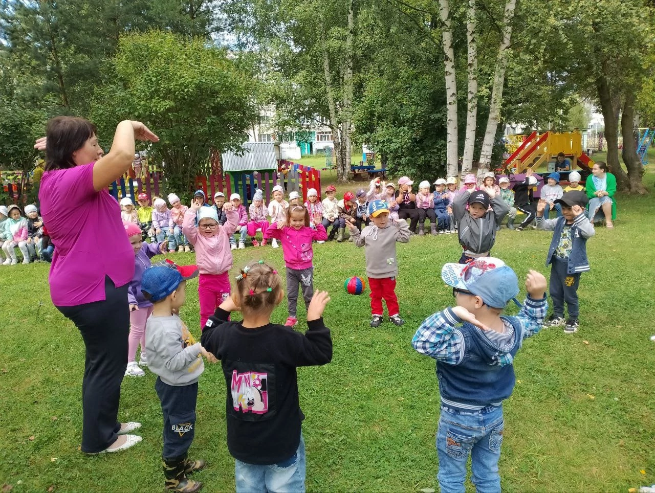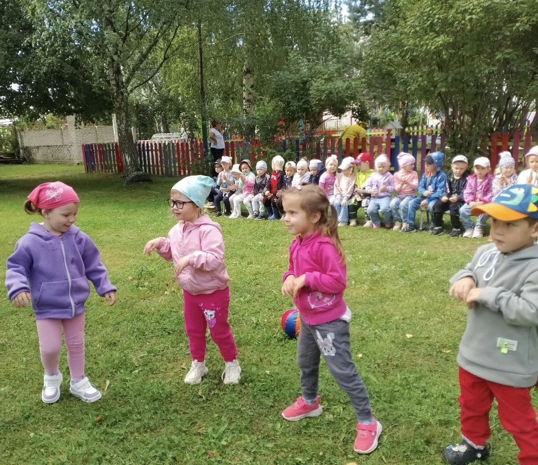 День физкультурника — праздник здоровья и движения, для детей начался с ритмической гимнастики: "Солнце золотое" и "На лужайке зайки танцевали".