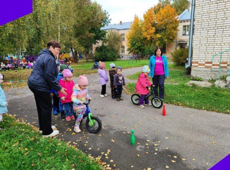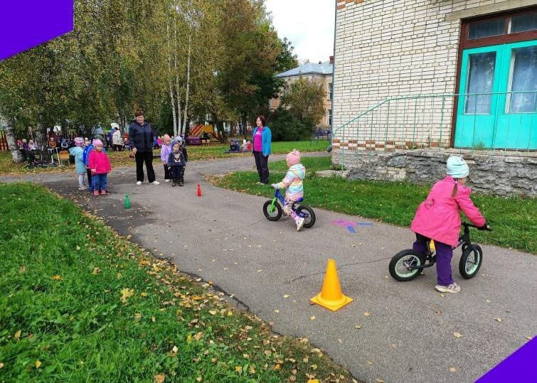 Ребята активно участвовали в эстафетах: "Извилистая дорога на самокатах ", "Автомобили на дороге", "Сигналы светофора" и "Беговелы в пути".