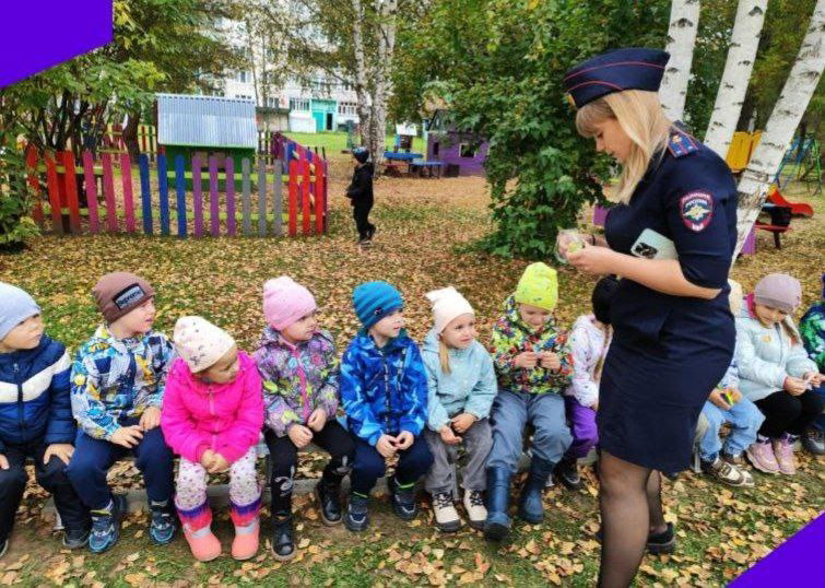 Гостем на нашем празднике была инспектор ГИБДД Макарова Светлана Алексеевна, которая напомнила о правилах поведения на дороге и подарила детям светоотражающие элементы на одежду.