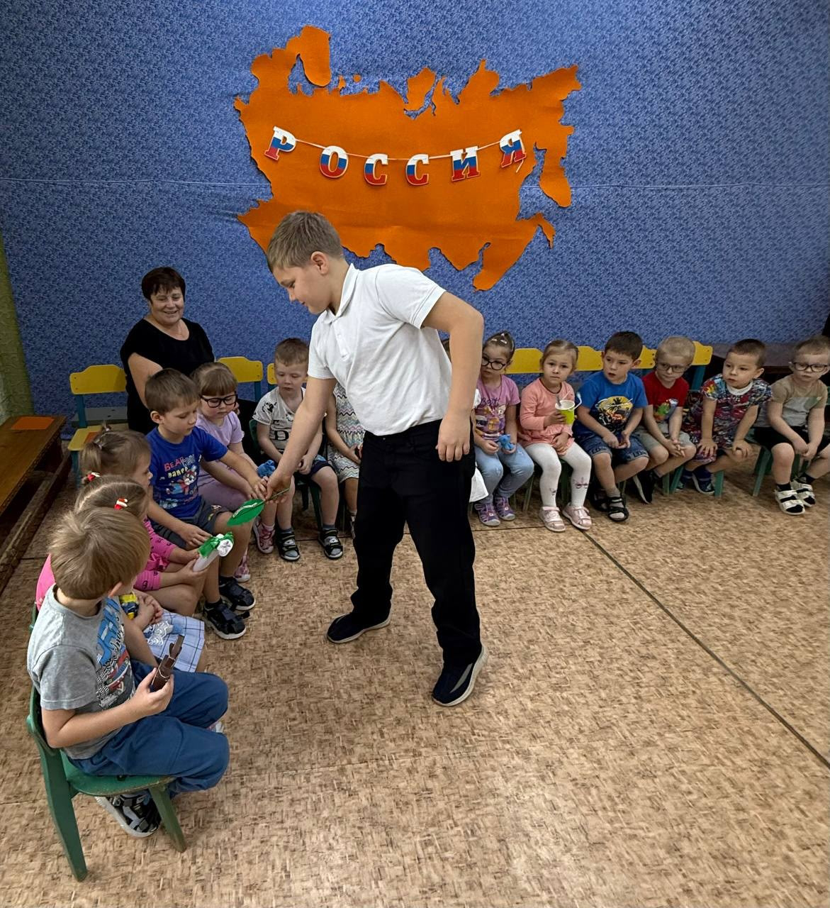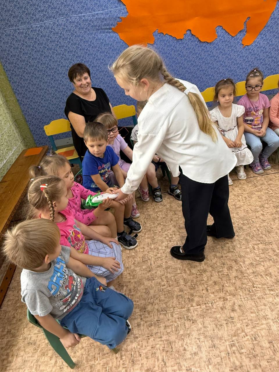 В гости к детям средней группы пришли с акцией Добра ученики третьего класса Вахромеевской школы. Ребята прочитали стихи о доброте, подарили детям подарки - игрушки , сделанные своими руками. Классный руководитель, Крылова Елена Алексеевна, рассказала дошколятам, что такое доброта. Все получили заряд положительной, доброй энергии.