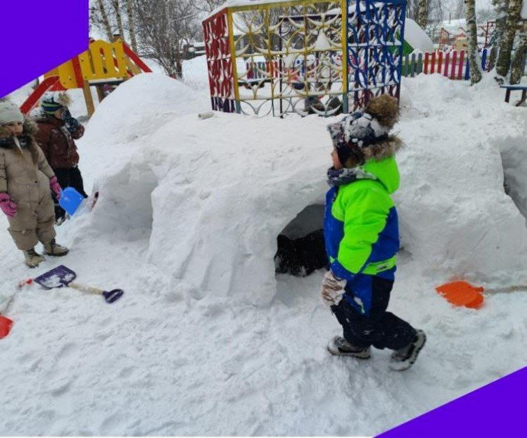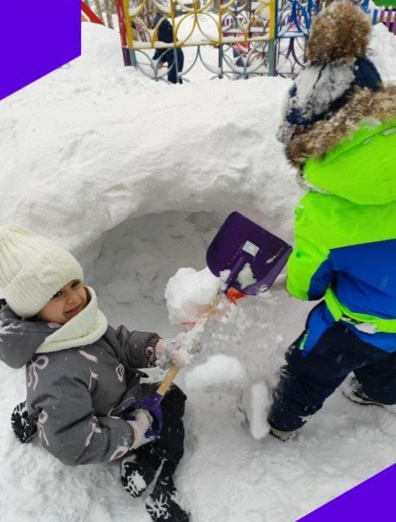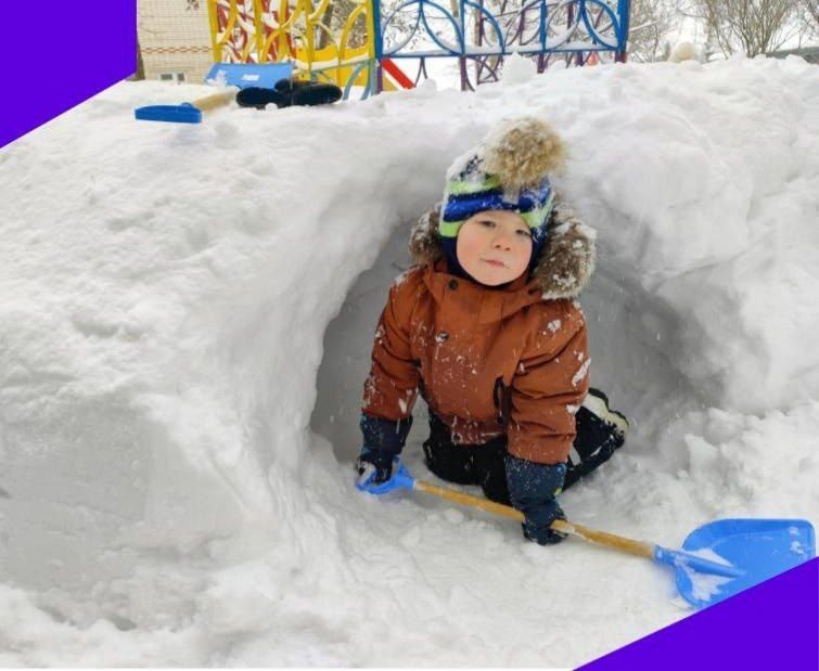 Туннель стал не только местом для игр, но и настоящим замком дружбы! Мы весело соревновались, кто лучше и быстрее построит снежную красоту!