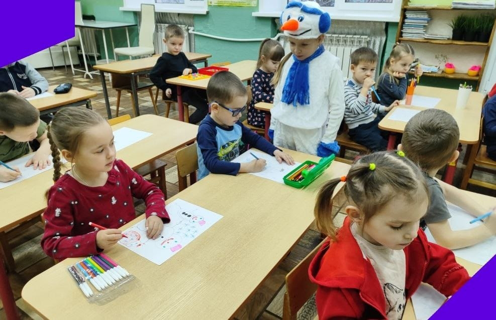 Ребята старшей группы нарисовали друзей снеговику.
