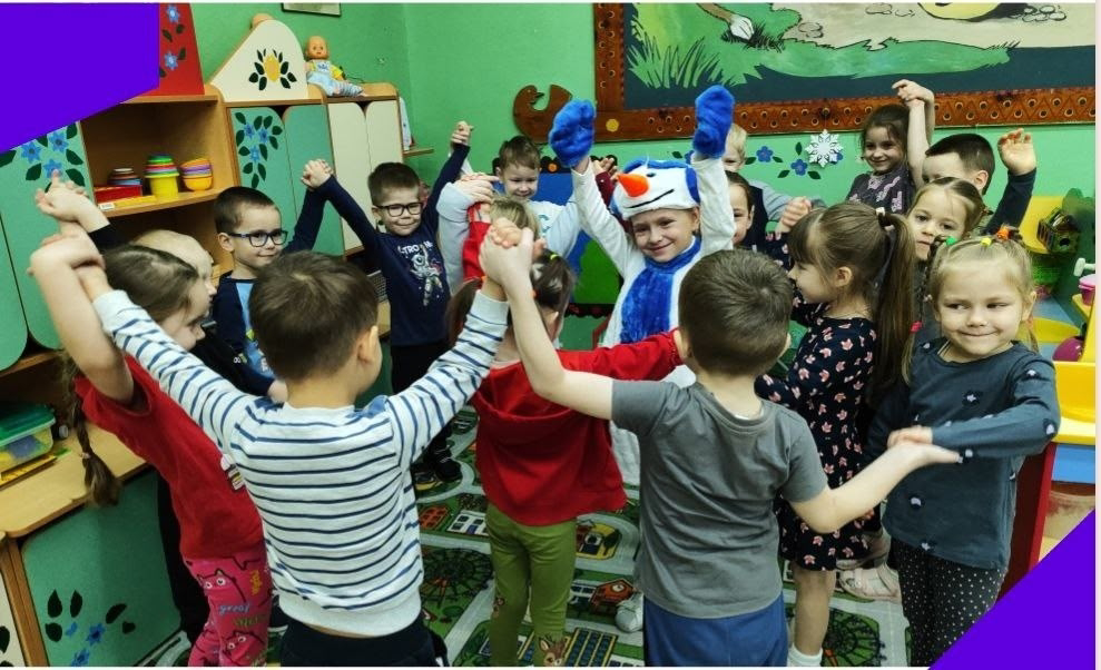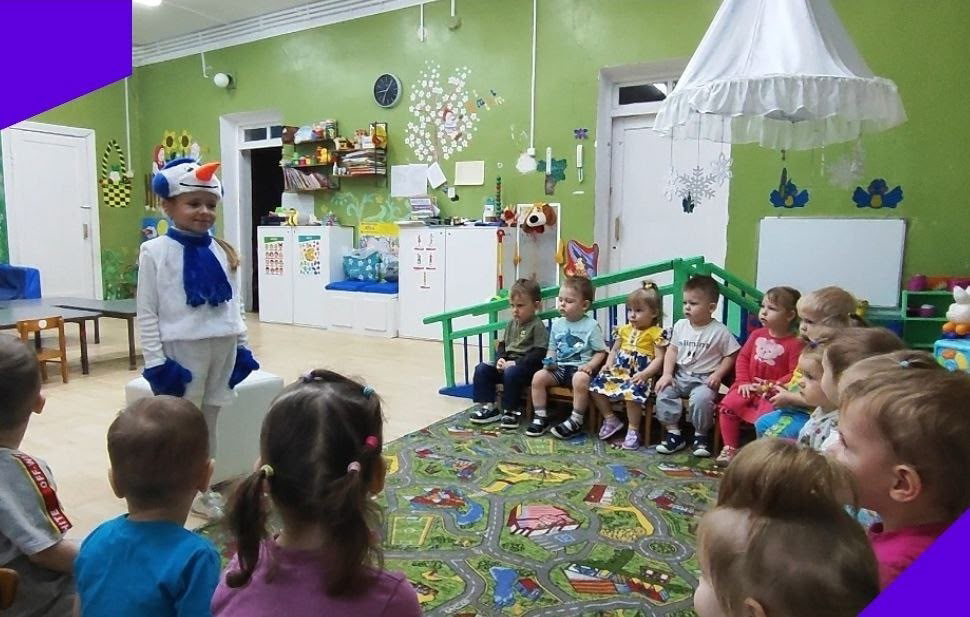 Сначала он посетил самых маленьких детей, которые были в восторге от нового друга! Наш снеговик рассказывал смешные истории, танцевал и играл с малышами в снежные игры!